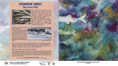 Rainbow smelt (Osmerus mordax) are fish that over-winter in estuaries and bays, including the Great Marsh. They spawn each spring in coastal streams and rivers. Smelt were so abundant in the early days that Native Americans scooped them up with woven baskets and their hands. Since 1800 smelt were always available in wintertime for commercial and recreational fishermen throughout the Great Marsh and New England area. Ice fishing in the Parker and Ipswich Rivers was a highlight of winters in the North Shore. [Click for Large Views]