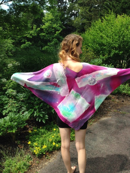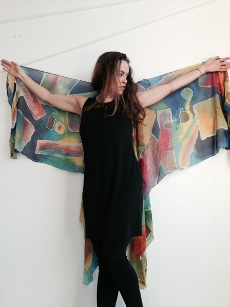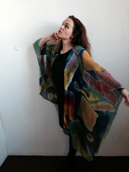I create silk ponchos, capes and scarves to represent the effects of climate change on our oceans.