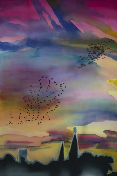 "The fluidity of the medium of dyes and resists in silk painting also influences my approach to design. This is combined with a commitment to organic landscaping and painting on silk with non-toxic materials."